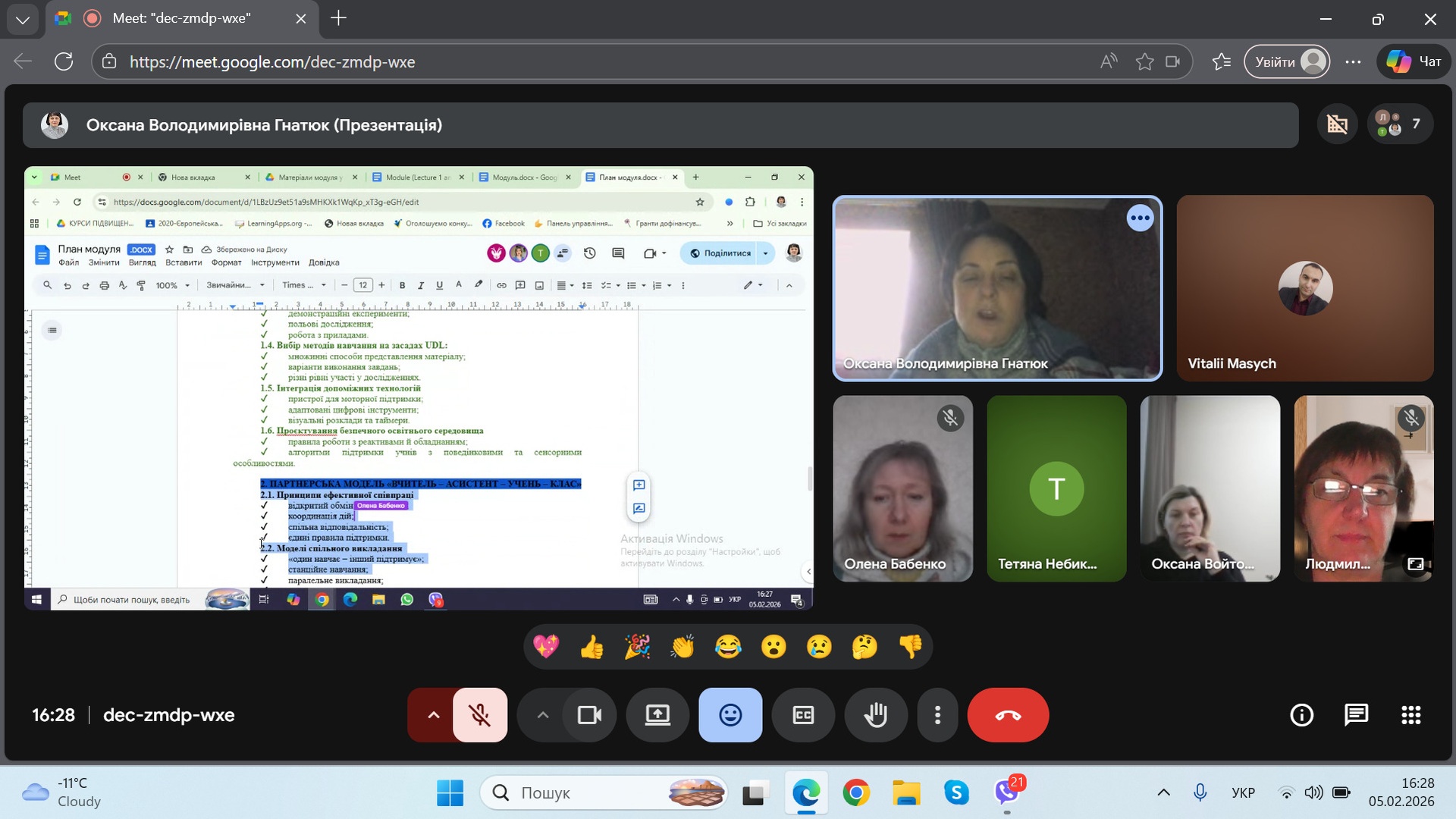 Під час зустрічі представники п’яти українських університетів, які входять до консорціуму даного проєкту, обговорили кількість годин, вид контролю та остаточно визначилися із назвою освітньої компоненти. Всі разом дійшли спільної думки, що курс має мати назву: «Методика навчання фізики / хімії / біології / природничих наук засобами альтернативної та додаткової комунікації».