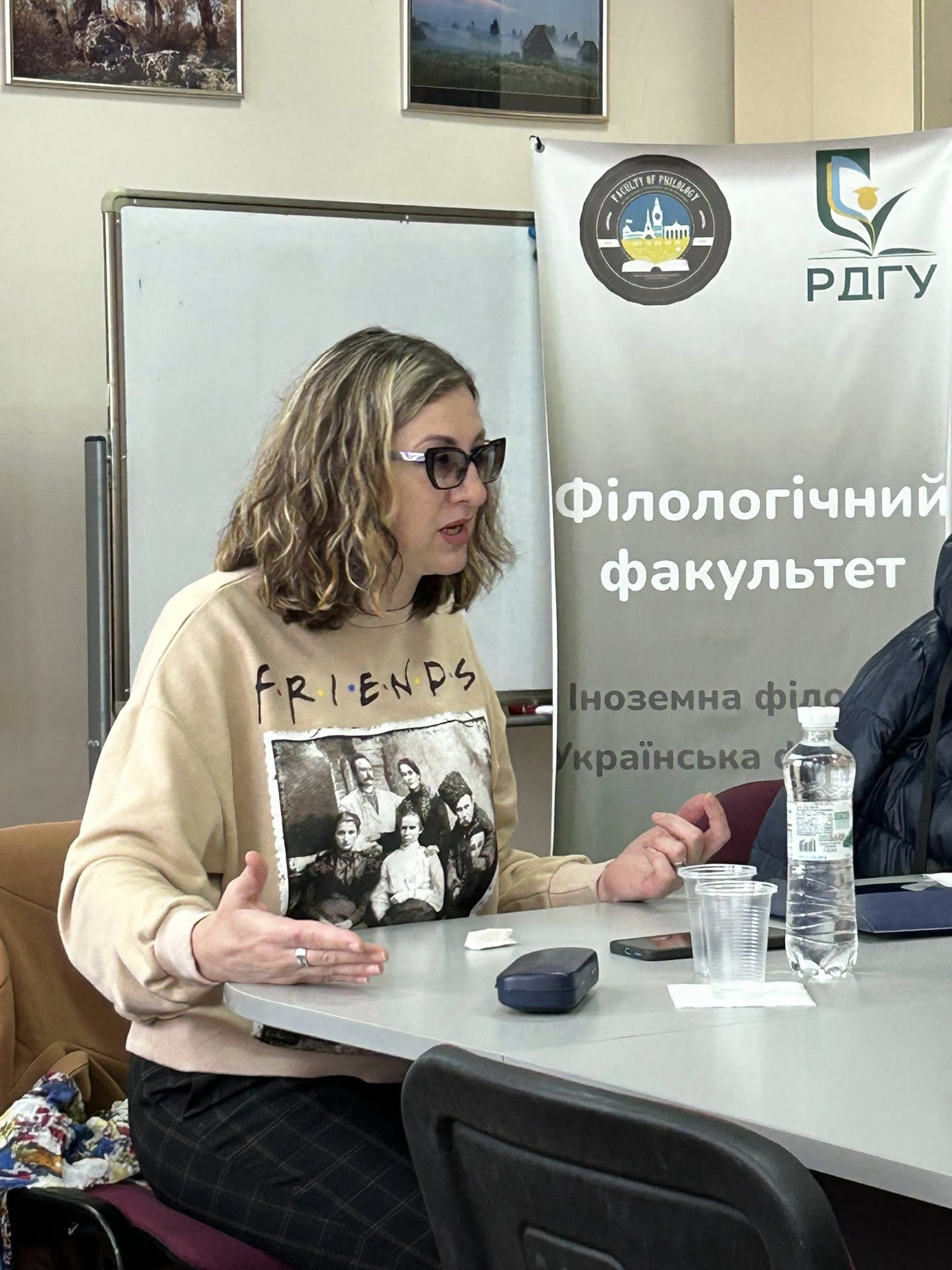 29 жовтня на філологічному факультеті з ініціативи кафедри української та зарубіжної літератури в межах декади філологічного факультету, присвяченої 85-річчю РДГУ,відбулася творча зустріч із випускницею факультету, письменницею Мирославою Кирильчук та презентація її роману «Микольцьове щастя».