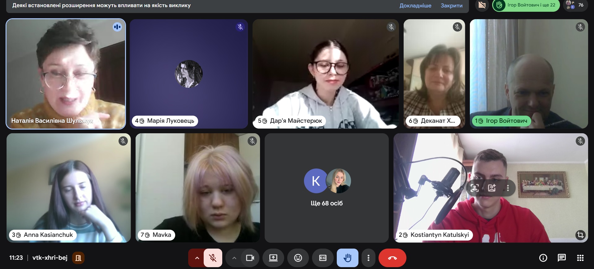 Лінгвістичний інтерактив, у якому залюбки взяли участь не лише здобувачі освіти, а і їхні наставники (професор Ірина Панчук, декан факультету історії та соціальних наук, професор Наталя Дзюбишина, декан художньо-педагогічного факультету, професор Ярослав Сверлюк, декан факультету музичного мистецтва) посутньо пожвавив авдиторію.