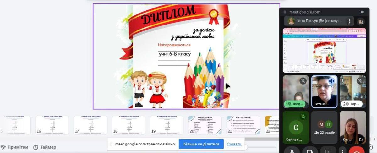 Студентка Панчук Катерина (спеціальність «Середня освіта (Українська мова і література») під час проходження виробничої практики на базі Рівненського ліцею № 13 провела мовний захід, присвячений Міжнародному дню рідної мови. Учні 6-В класу взяли активну учать у бліц-вікторині «Ми знаємо українську мову» та мовному батлі «Антисуржик». У процесі роботи застосовувалися інтерактивні методи навчання: мовна гра, командна робота, творче завдання. Мета заходу – поглиблення знань учнів про багатство й самобутність української мови.