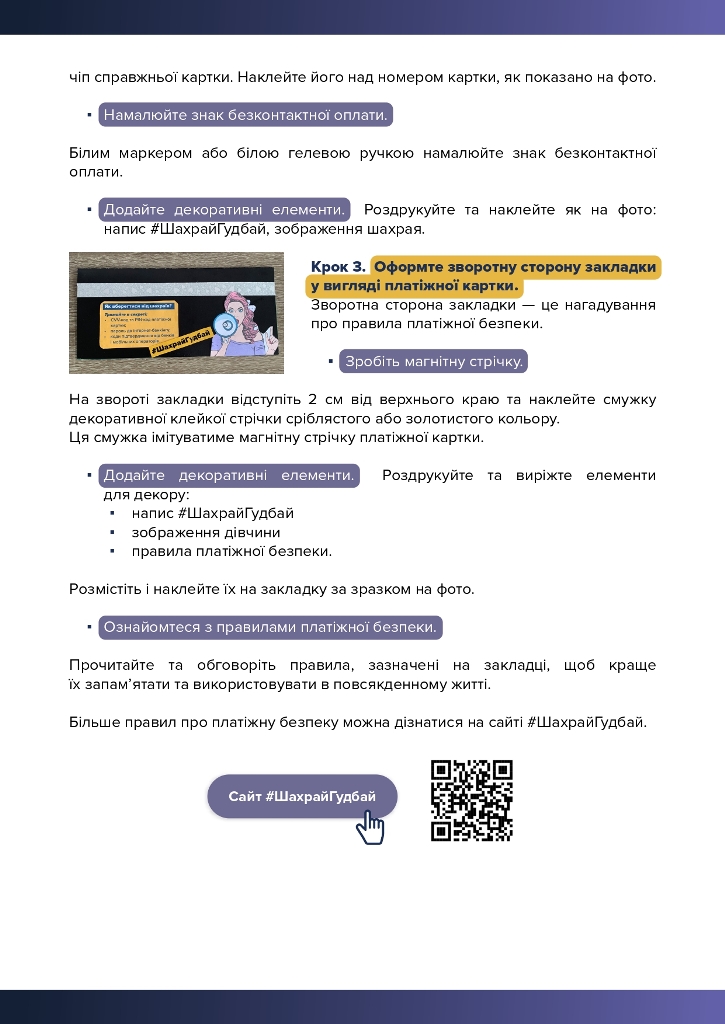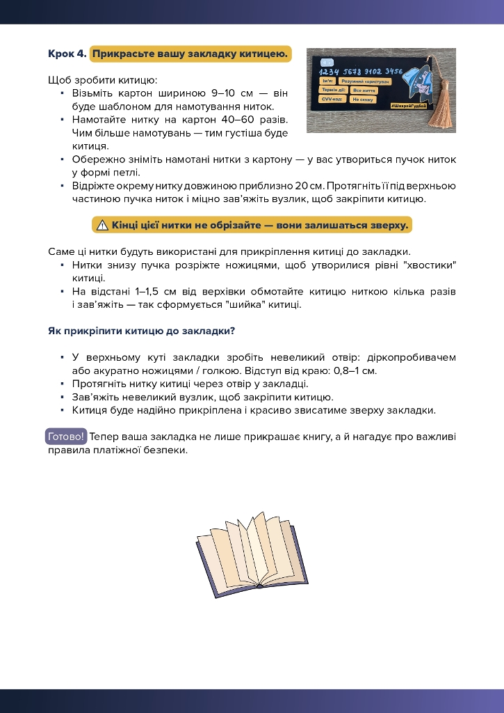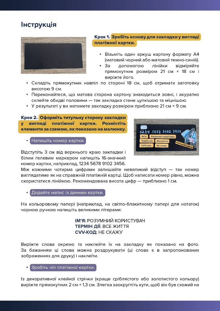 це освітня ініціатива, під час якої учасники дізнаються про основні правила платіжної безпеки та створюють власні закладки для книг у вигляді платіжних карток, які нагадуватимуть про важливі правила фінансової безпеки.