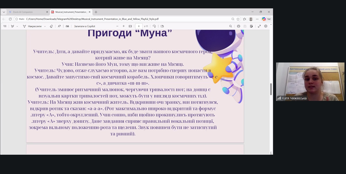 Молодіжна академічна спільнота обговорювала актуальні проблеми сучасного мистецтва й педагогіки, а саме: використання АІ-інструментів у проєктній діяльності здобувачів мистецької освіти; творчі проєкти у контексті синтезу мистецтв, творчість Сергія Жадана у вимірі перетину мистецтв; психоемоційну підтримку дітей засобами музичного мистецтва; співочий розвиток молодших школярів засобами вокальних історій.