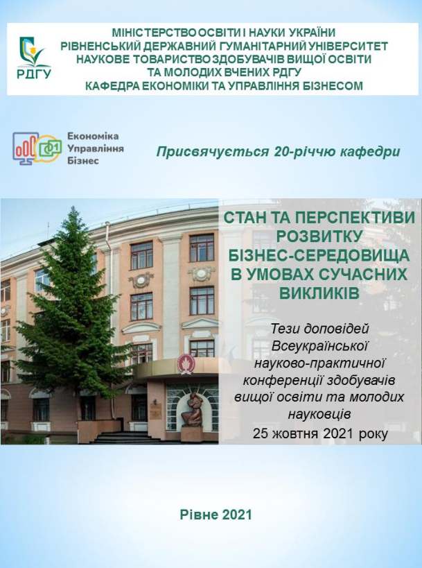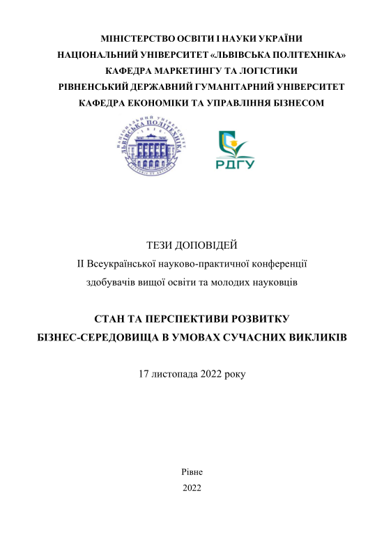 ТЕЗИ ДОПОВІДЕЙ ІІ Всеукраїнської науково-практичної конференції здобувачів вищої освіти та молодих науковців "СТАН ТА ПЕРСПЕКТИВИ РОЗВИТКУ БІЗНЕС-СЕРЕДОВИЩА В УМОВАХ СУЧАСНИХ ВИКЛИКІВ"