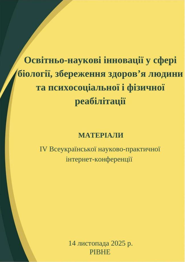 Освітньо-наукові інновації у сфері біології, збереження здоров’я людини та психосоціальної і фізичної реабілітації: збірник матеріалів ІV Всеукраїнської науково-практичної інтернет-конференції (м. Рівне, 14 листопада 2025 р.).