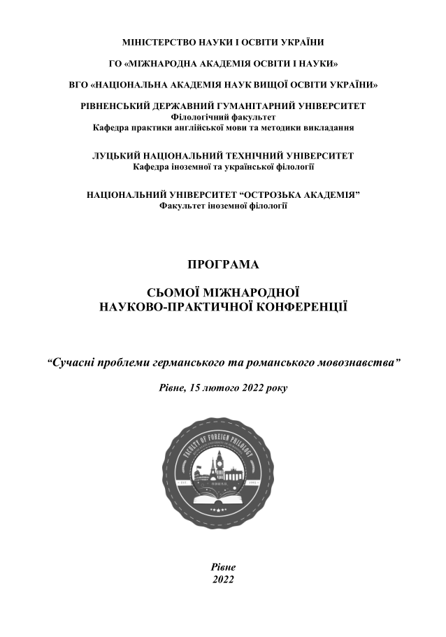 Сучасні проблеми германського та романського мовознавства. (15.02.2022р.)
