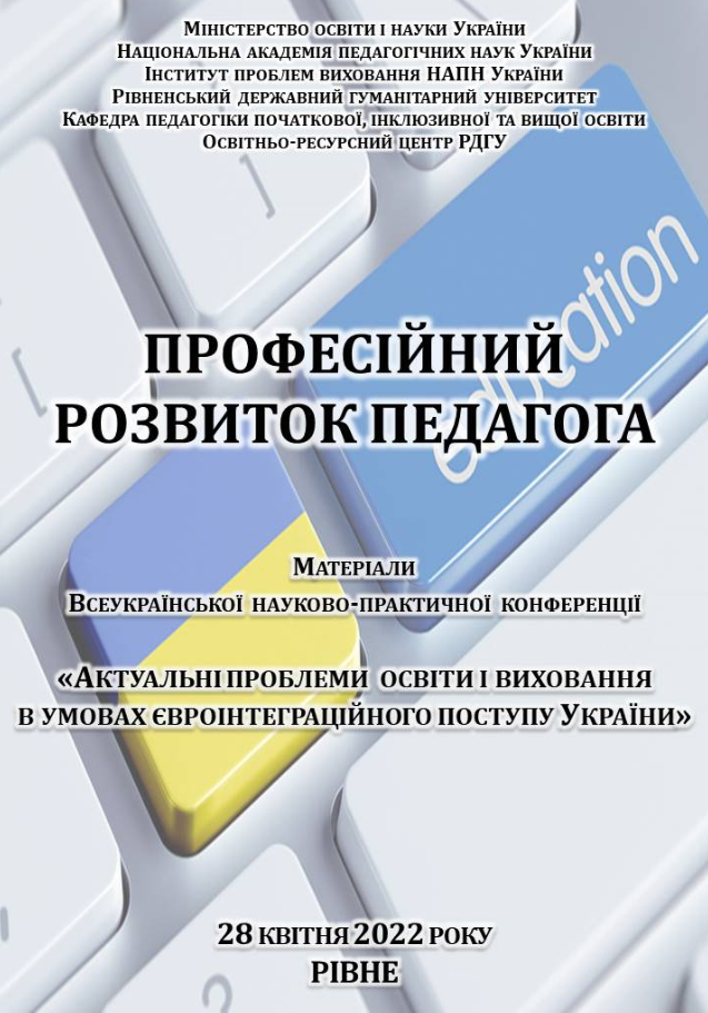 Професійний розвиток педагога : збірник матеріалів Всеукраїнськоїнауково-практичної конференції, м. Рівне, 28 квітня 2022 р.