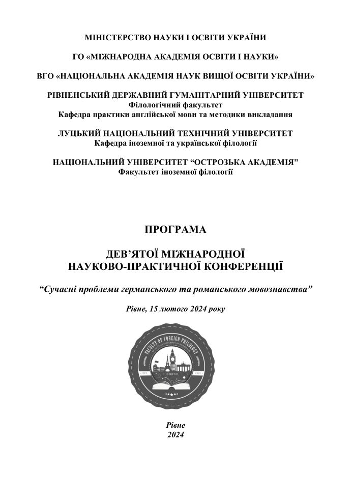 ПРОГРАМА ДЕВ’ЯТОЇ МІЖНАРОДНОЇ НАУКОВО-ПРАКТИЧНОЇ КОНФЕРЕНЦІЇ (Рівне, 15 лютого 2024 р.)