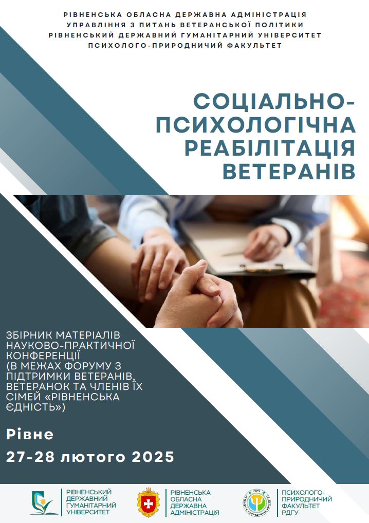 СОЦІАЛЬНО-ПСИХОЛОГІЧНА РЕАБІЛІТАЦІЯ ВЕТЕРАНІВ. ЗБІРНИК МАТЕРІАЛІВ НАУКОВО-ПРАКТИЧНОЇ КОНФЕРЕНЦІЇ (В МЕЖАХ ФОРУМУ З ПІДТРИМКИ ВЕТЕРАНІВ, ВЕТЕРАНОК ТА ЧЛЕНІВ ЇХ СІМЕЙ «РІВНЕНСЬКА ЄДНІСТЬ») (Рівне, 27-28 лютого 2025)