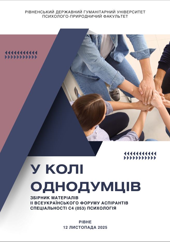 «У КОЛІ ОДНОДУМЦІВ» ЗБІРНИК МАТЕРІАЛІВ II ВСЕУКРАЇНСЬКОГО ФОРУМУ АСПІРАНТІВ СПЕЦІАЛЬНОСТІ C4 (053) ПСИХОЛОГІЯ(м. Рівне, 12 листопада 2025 р.).