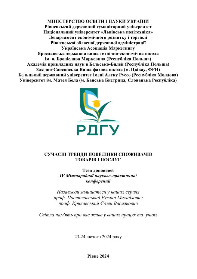 Сучасні тренди поведінки споживачів товарів і послугТези доповідей ІV Міжнародної науково-практичної конференції 23-24 лютого 2024 року