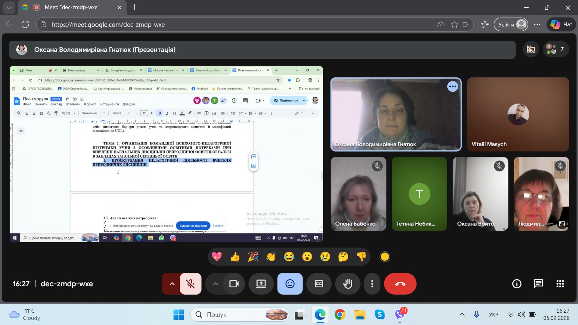 Під час зустрічі представники п’яти українських університетів, які входять до консорціуму даного проєкту, обговорили кількість годин, вид контролю та остаточно визначилися із назвою освітньої компоненти. Всі разом дійшли спільної думки, що курс має мати назву: «Методика навчання фізики / хімії / біології / природничих наук засобами альтернативної та додаткової комунікації».
