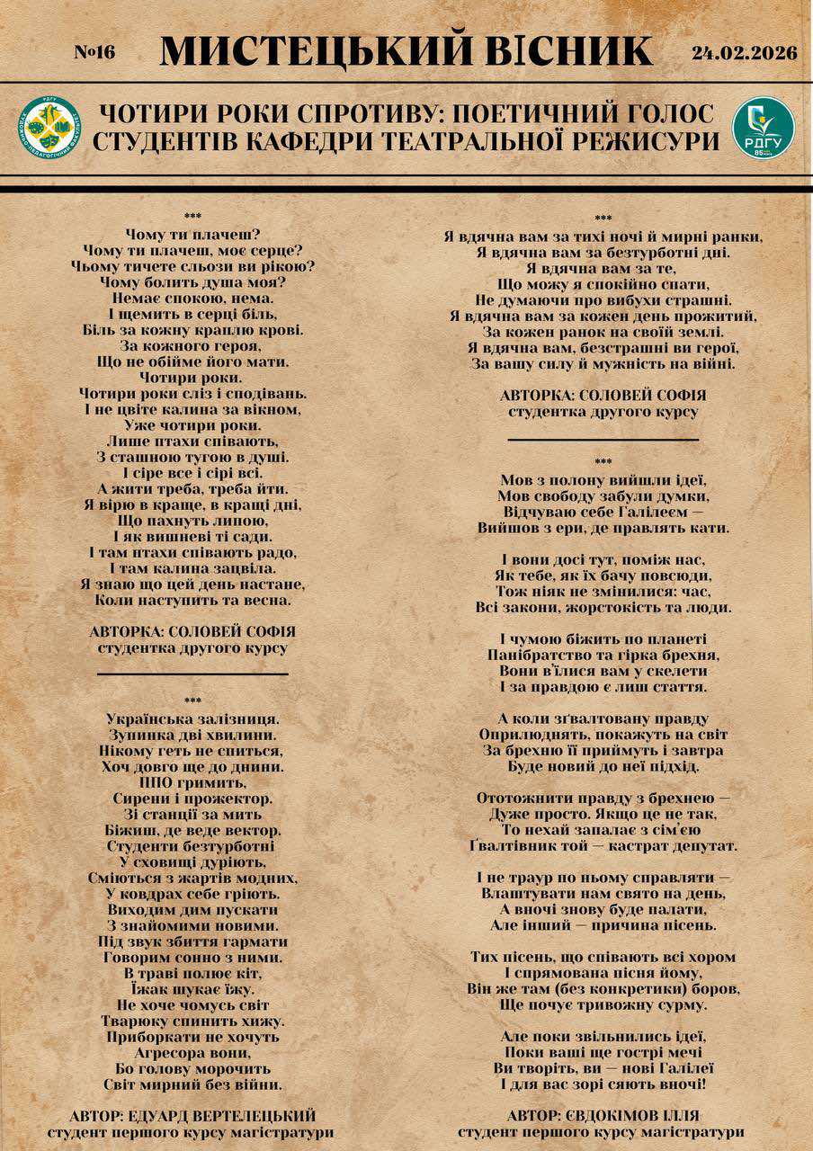 Серед них — випускники та студенти РДГУ. Наші герої. Наші світлі імена. Вони навчались у цих стінах, мріяли, будували плани, любили життя… І стали на захист держави.