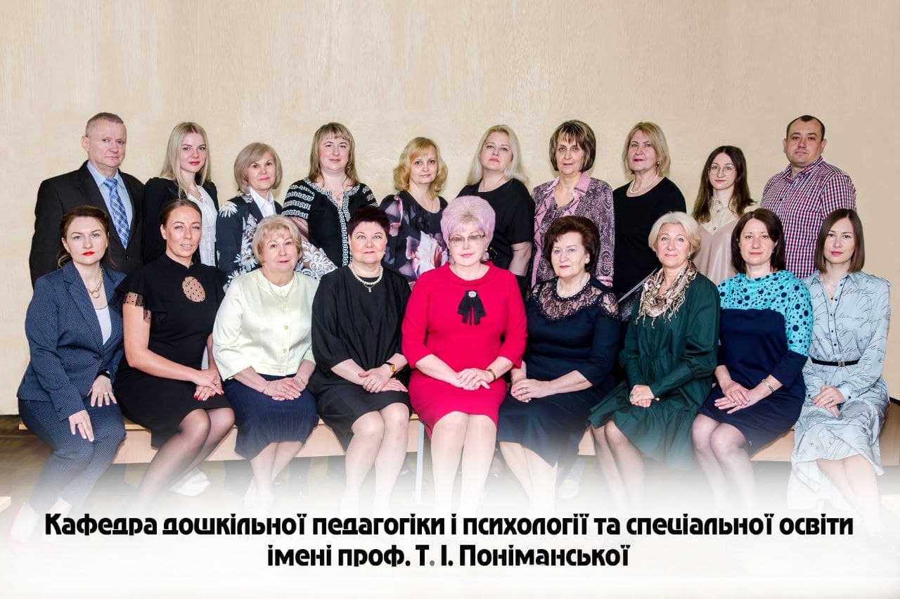 Кафедра дошкільної педагогіки і психології та спеціальної освіти імені проф. Т.І. Поніманської – завідувач кафедри Ілона ДИЧКІВСЬКА, доктор педагогічних наук, професор.