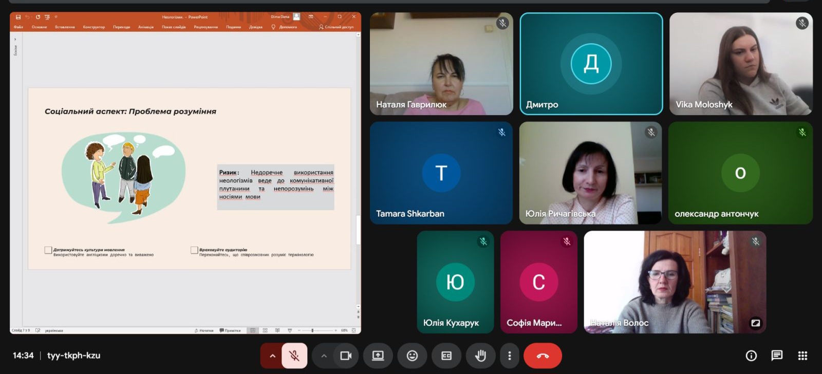 Яскравим завершенням циклу заходів стала дискусія, організована неографічною лабораторією «NEOLEX-Рівне» та магістрантами філологічного факультету. Учасники дебатували на тему «Неологізми англійського походження в українській мові: закономірний розвиток чи мовна експансія?». Під час дебатів прозвучали як аргументи на користь запозичень, так і застереження від їхнього засилля. З одного боку, учасники доводили, що мова – це живий організм, а нові слова англійського походження допомагають швидкій комунікації в IT, бізнесі та науці, заповнюючи прогалини, для яких у нас поки що немає лаконічних відповідників; з іншого – застерігали від надмірного запозичення, наголошуючи, що безконтрольна «експансія» розмиває ідентичність мови та витісняє чудові українські синоніми, а також ускладнює взаєморозуміння між різними поколіннями. Цікавою та емоційною виявилася дискусія про примарну престижність та маніпулятивні аспекти запозичень. Підсумок дебатів: запозичення властиві будь-якій мові, але важливо дотримуватися балансу і використовувати їх тільки тоді, коли в мові немає точного відповідника для позначуваного поняття, а ще краще – творити власні нові слова на питомій лексичній основі.