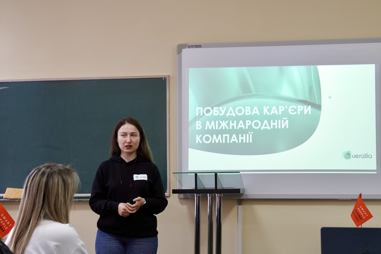Воркшоп «Побудова карʼєри в міжнародній компанії» провела фахівчиня з персоналу Verallia Ukraine Марія Ничипорчук, яка розповіла про можливості для професійного зростання в українських та міжнародних компаніях, як працює бізнес Рівненщини у сучасних умовах і як налаштовані бізнес-процеси допомагають дотримуватися стандартів міжнародного рівня.