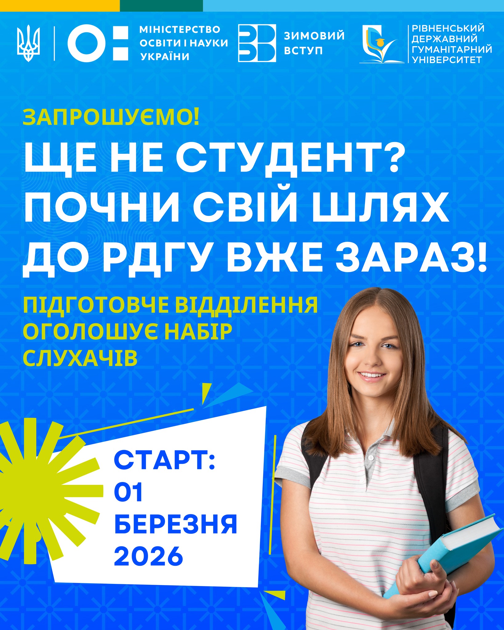 Підготовче відділення у Рівненському державному гуманітарному університеті – це твій шанс підготуватися до майбутнього навчання та вступити на омріяну освітню програму. Навчання на підготовчому відділенні рекомендоване випускникам закладів загальної середньої та фахової передвищої освіти, а також усім, хто планує вступ до РДГУ у 2026 році.
