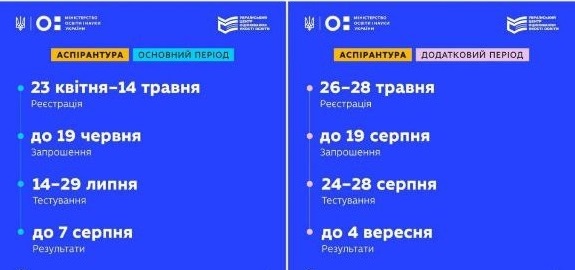 Графік проведення ЄВІ/ЄВВ для вступу в аспірантуру