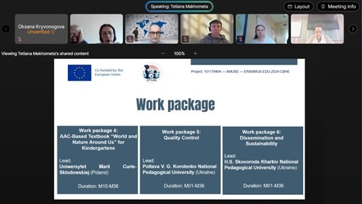 On February 12, 2025, the team of Rivne State University of Humanities implementing the project “Comprehensive Implementation of Augmented and Alternative Communication Methodology in the Ukrainian Education System” (AMUSE) joined a meeting with the project officer of the European Executive Agency for Education and Culture (ЕАСЕА) Xavier Flament. This event was another step towards the successful implementation of the Erasmus+ KA2 project.