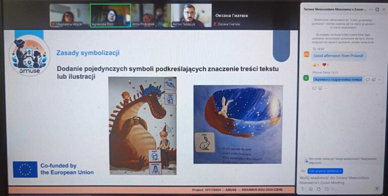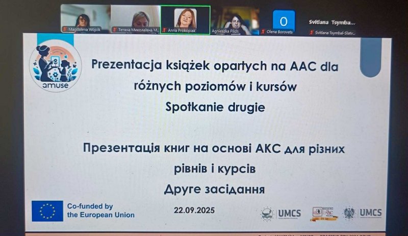 22 вересня 2025 року професорка Анна Прокоп’як та докторка Магдалена Вуйцік з Університету Марії Склодовської-Кюрі у Любліні разом з Агнешкою Пільх, президенткою Асоціації «Говори без слів» – ISAAC Poland, поділилися досвідом адаптації навчальних матеріалів для учнів із інвалідністю, зокрема для користувачів альтернативної та додаткової комунікації (AДК), з українськими партнерами проєкту.