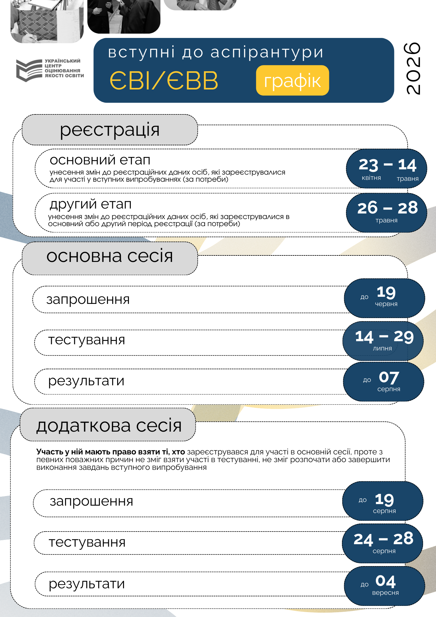 КАЛЕНДАР ПРОВЕДЕННЯ ЄВІ/ЄФВВ/ЄВВ - 2026 (магістратура, аспірантура)