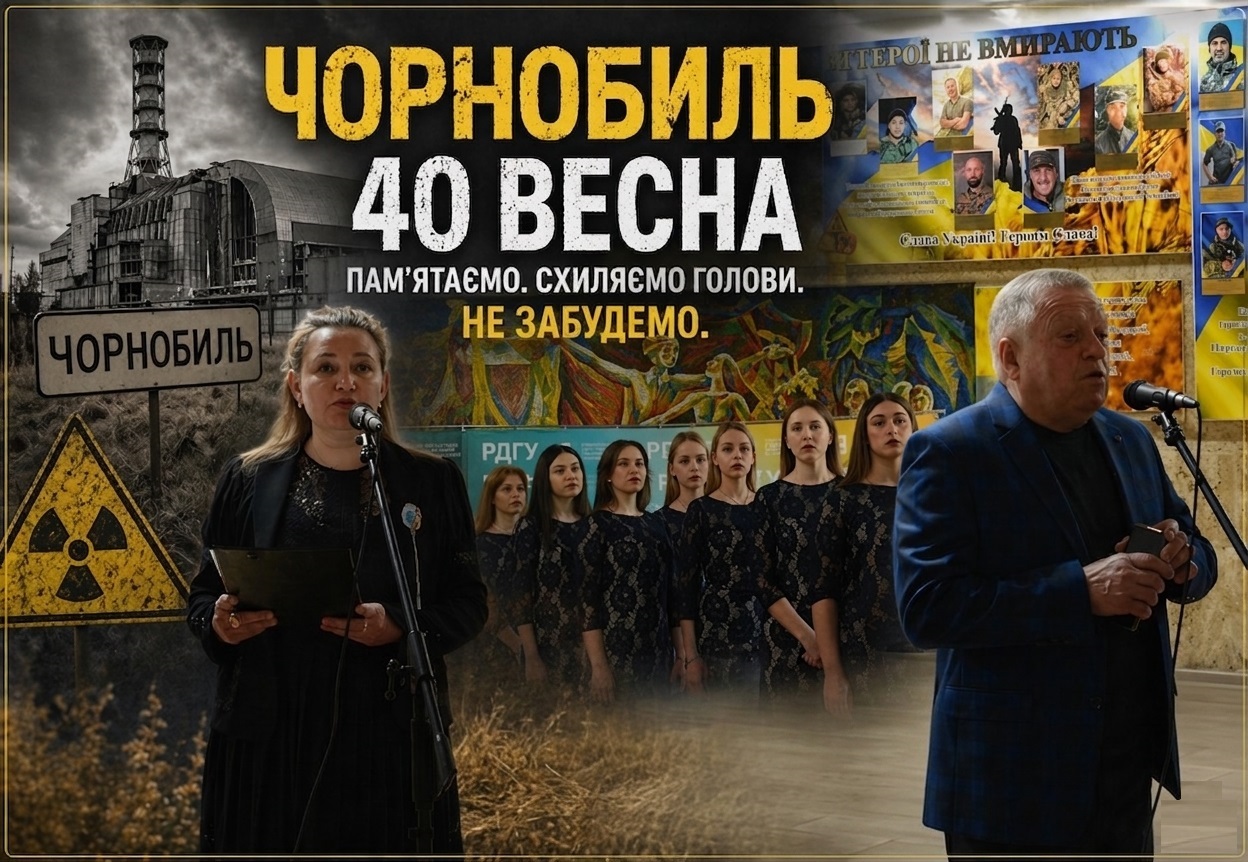 Гіркі чорнобильські дзвони не змовкають ось уже 40 років. 21 квітня 2026 року в мистецькому холі Рівненського державного гуманітарного університету студенти, викладачі, співробітники та керівництво вишу віддали данину пам’яті страшній трагедії в історії людства - Чорнобильській катастрофі, згадавши Імена ліквідаторів на Чорнобильській АЕС, мирному населенню, що загинули у найбільшій техногенній катастрофі в історії людства.