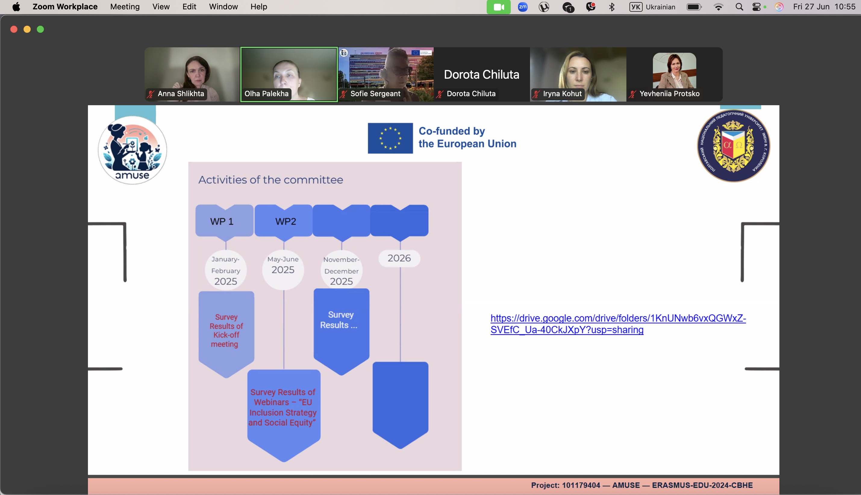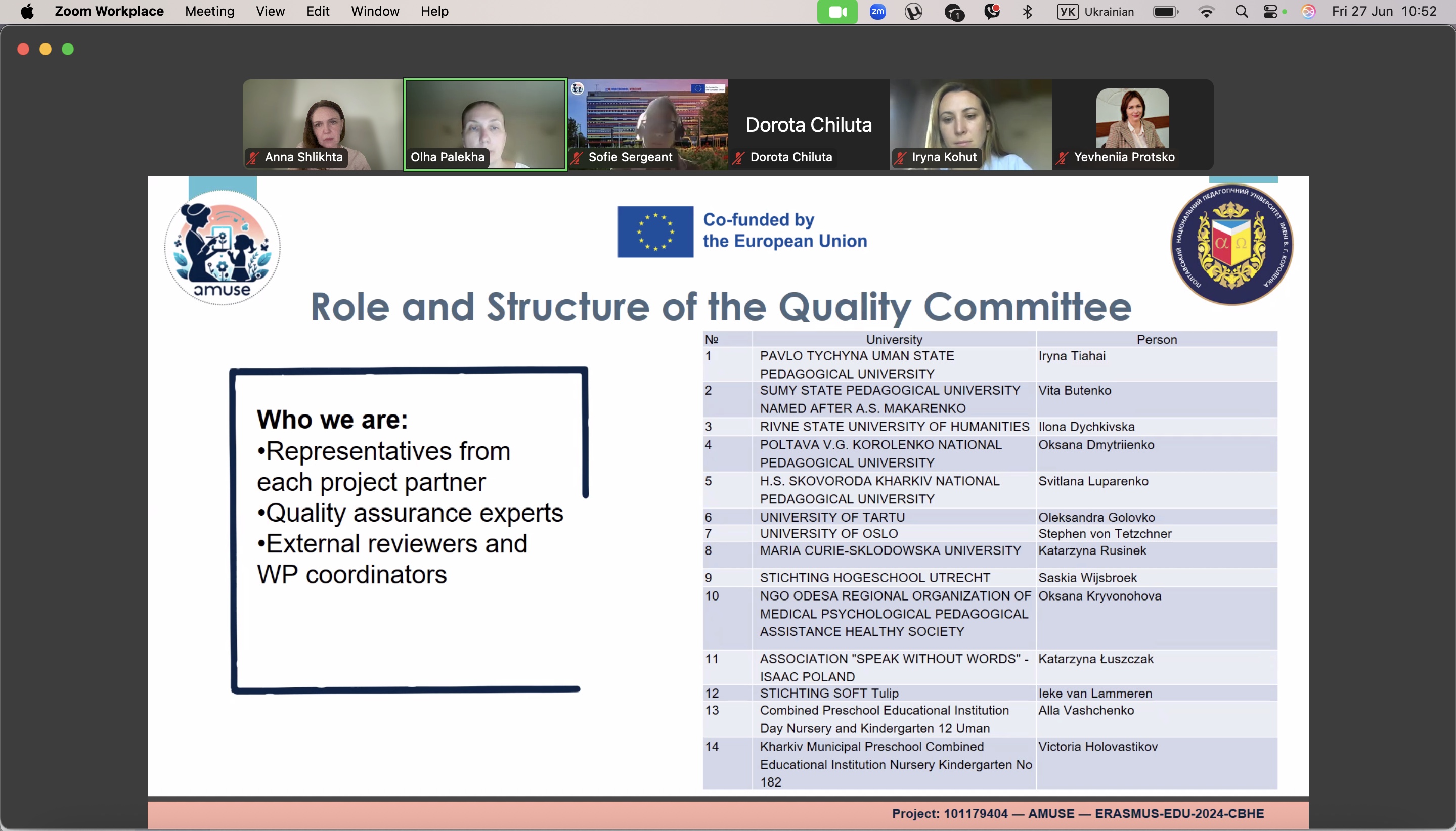 27 червня 2025 року відбулася чергова онлайн-зустріч партнерів міжнародного проєкту AMUSE – Комплексне впровадження методології альтернативної та додаткової комунікації (AAC) в українську систему освіти, що реалізується за підтримки Програми Erasmus+ (CBHE).