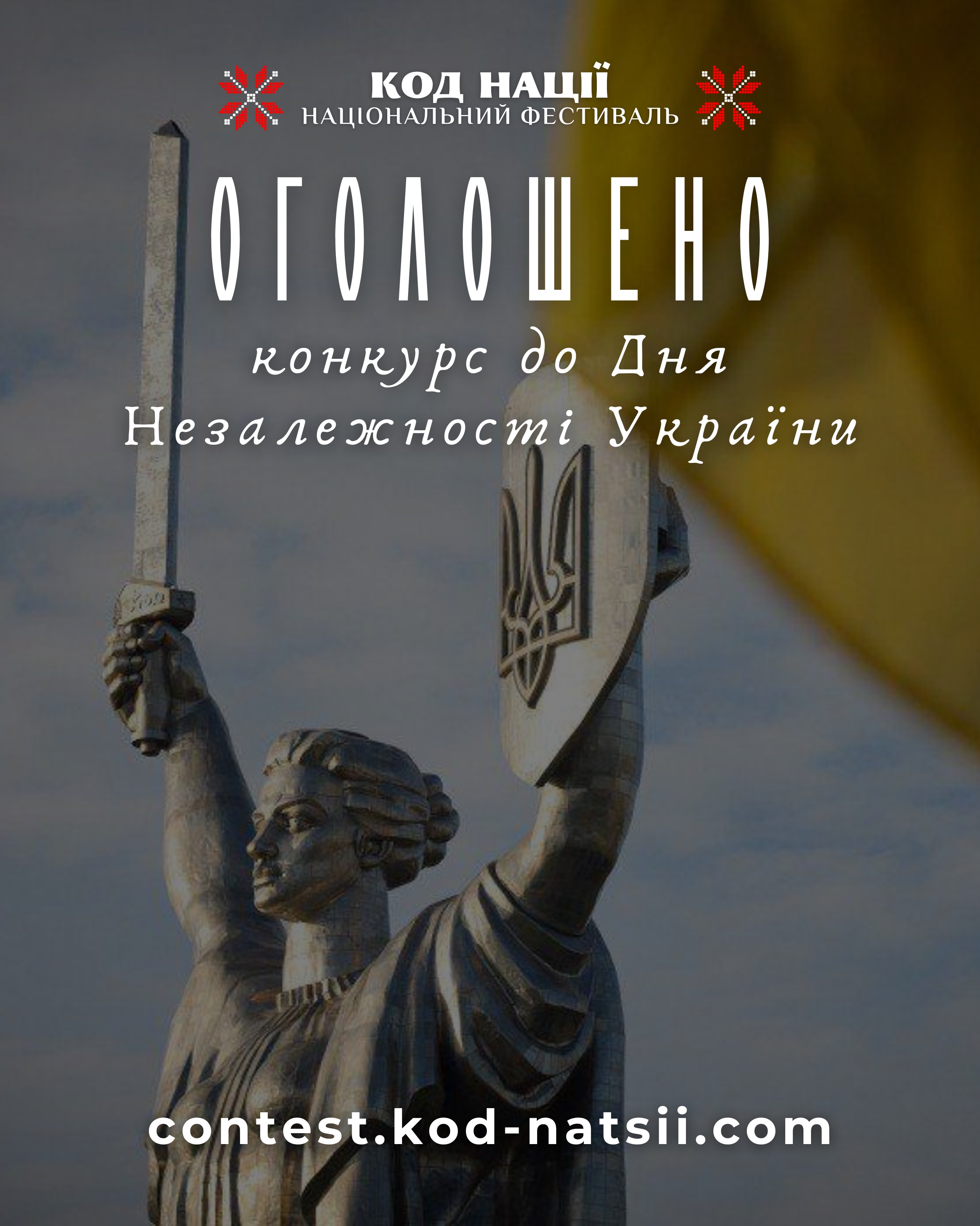 Національним Фестивалем “Код Нації” оголошено проведення Всеукраїнського конкурсу творчих проєктів “Код Нації” до 34-ї річниці Незалежності України. Головною метою Конкурсу є створення творчих проєктів - художніх, декоративно-ужиткових, вокальних, хореографічних, сценічних та інших - відповідно до його тематики, з метою розвитку та утвердження в українському суспільстві культурних, освітніх, духовних і патріотичних цінностей.