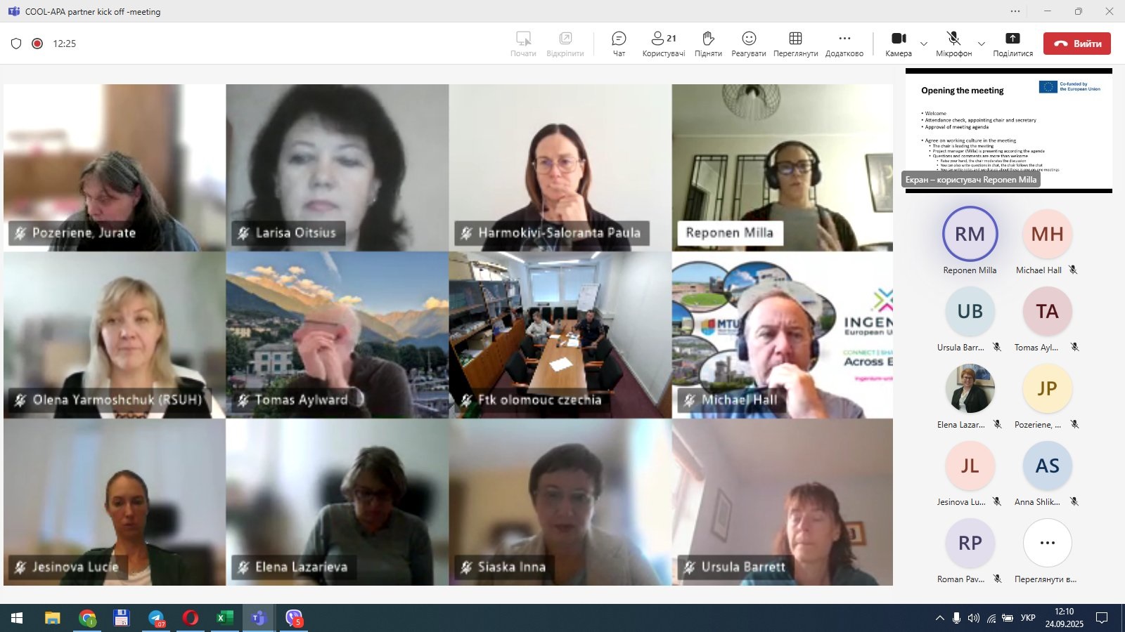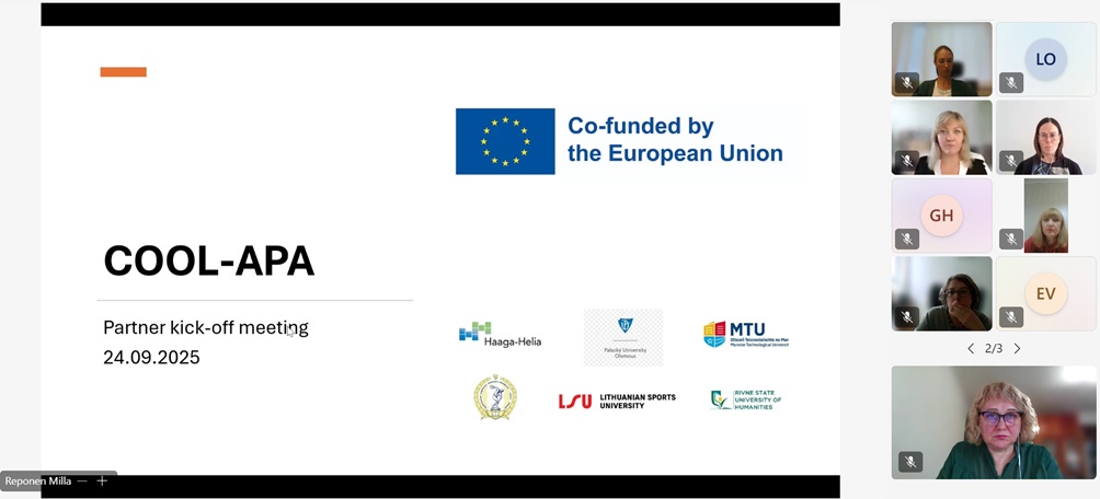 24 вересня 2025 року відбулася стартова онлайн-зустріч партнерів міжнародного проєкту COOL-APA 2025-1-FI01-RF220-HED-000357318 (Спільне онлайн- та очне навчання з адаптивної фізичної активності), що реалізується за підтримки Програми Erasmus+ (CBHE).