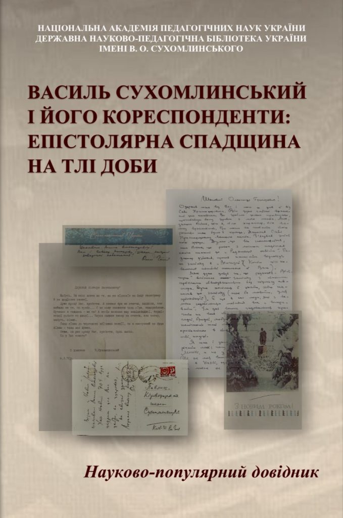 Василь Сухомлинський і його кореспонденти: епістолярна спадщина на тлі доби: наук.-попул. довід. / НАПН України, ДНПБ України ім. В. О. Сухомлинського ; [упоряд.: Сухомлинська О. В., Сухомлинська Л. В., Бойко О. А. та ін.]. – Електрон. вид. – Вінниця: Твори, 2025. – 531 c. Портал ДНПБ: https://dnpb.gov.ua/ua/?ourpublications=43577; Фейсбук ДНПБ: https://www.facebook.com/share/p/1AywfpCBXX/; Електронна бібліотека НАПН України: https://lib.iitta.gov.ua/id/eprint/745944/. DOI: 10.33407/lib.NAES.id/74594.