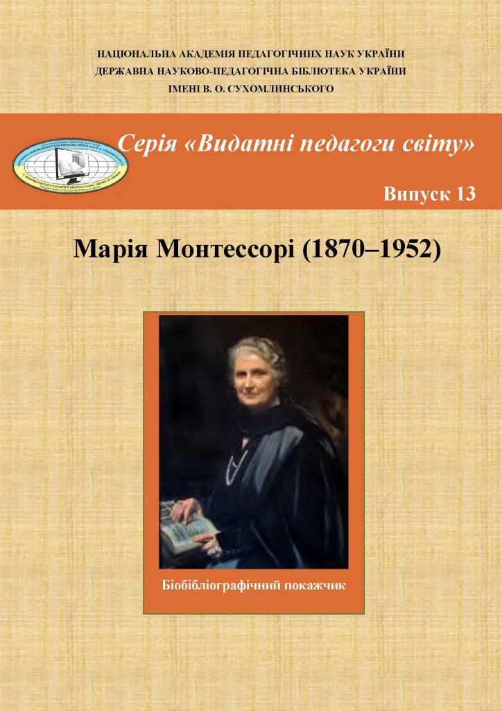 Марія Монтессорі (1870–1952) [Електронний ресурс]: біобібліогр. покажч. / НАПН України, ДНПБ України ім. В. О. Сухомлинського ; [упоряд.: Березівська Л. Д., Гавриленко Т. Л., Дурдас А. П. та ін. ; наук. ред. Березівська Л. Д.]. – Текст. дані. – Вінниця: Твори, 2025. – 354 с. – (Серія «Видатні педагоги світу» ; вип. 13). Портал ДНПБ: https://dnpb.gov.ua/ua/?ourpublications=43586; Електронна бібліотека НАПН України: https://lib.iitta.gov.ua/id/eprint/745919/. DOI 10.33407/lib.NAES.id/745919;