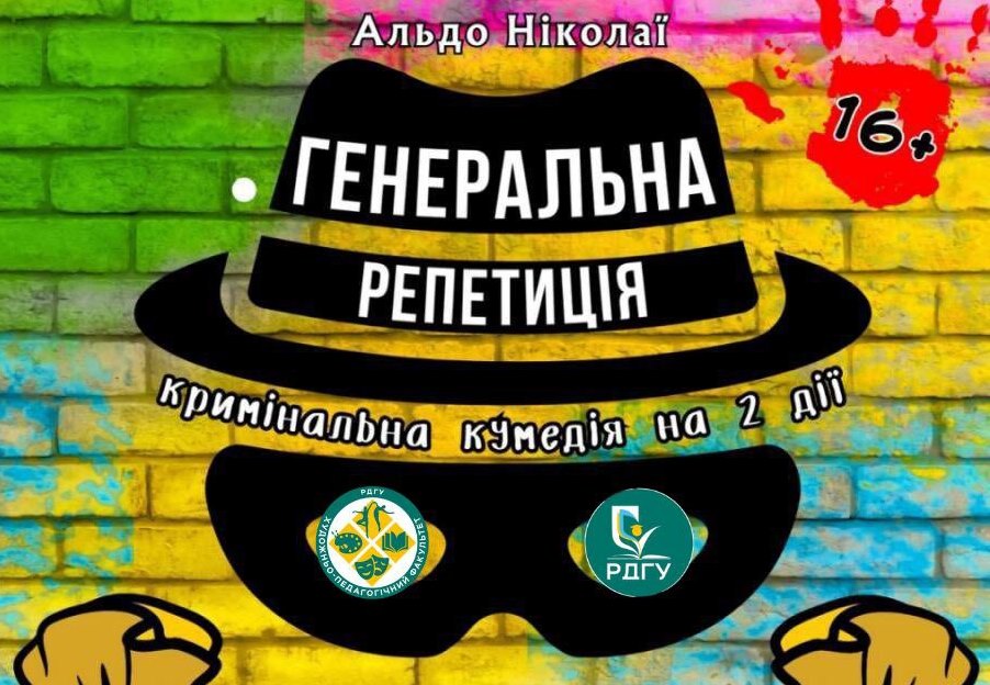 Актори-випускники : Іван Вережак , Каріна Іванчук Єва Карпюк, Едуард Вертилецький, Павло Коркунець для Вас зіграють свою фінальну найоптимістичнішу комедію виставу «Генеральна репетиція» за Альдо Ніколаї! Режисер Олена Мельничук.