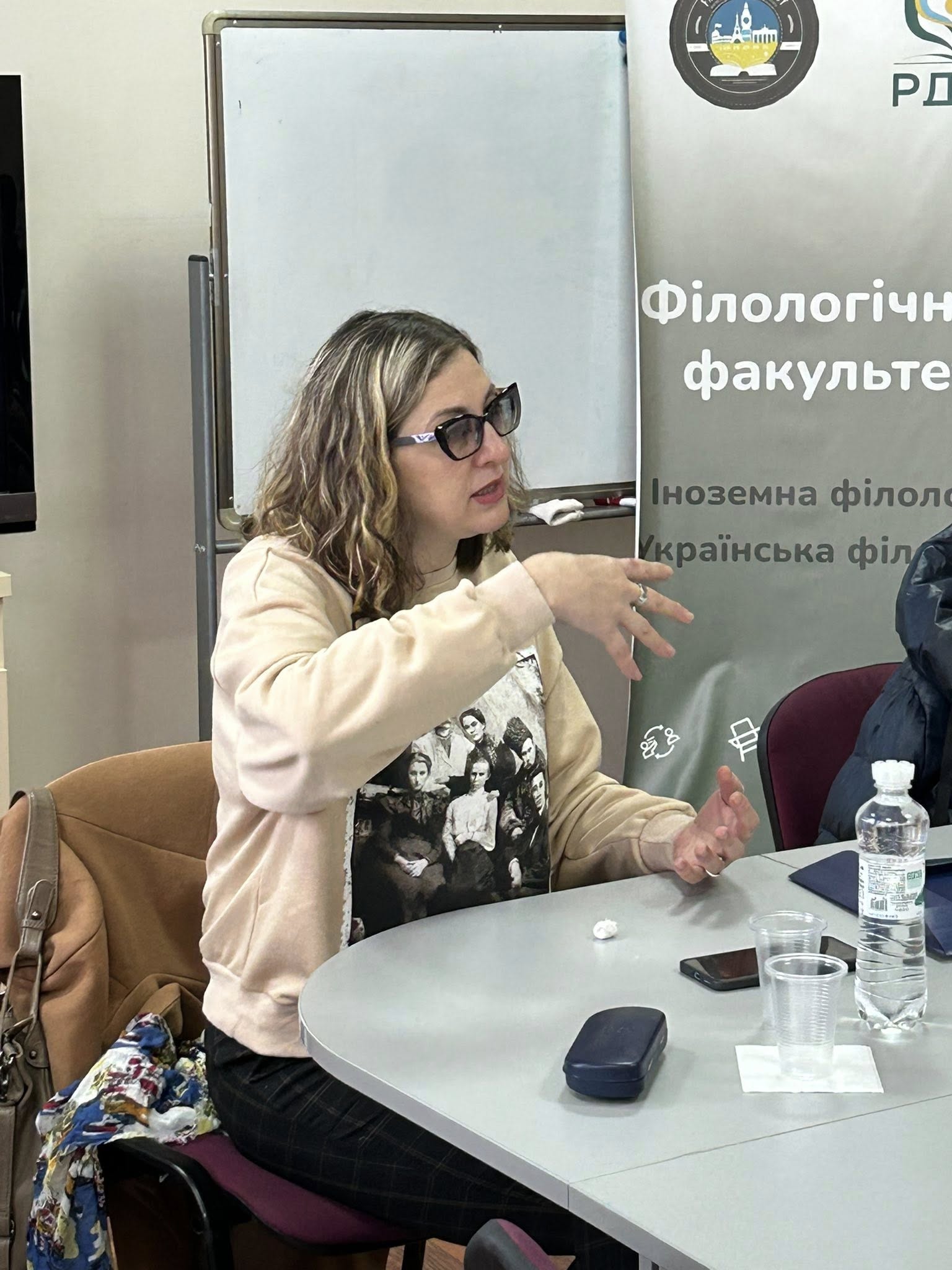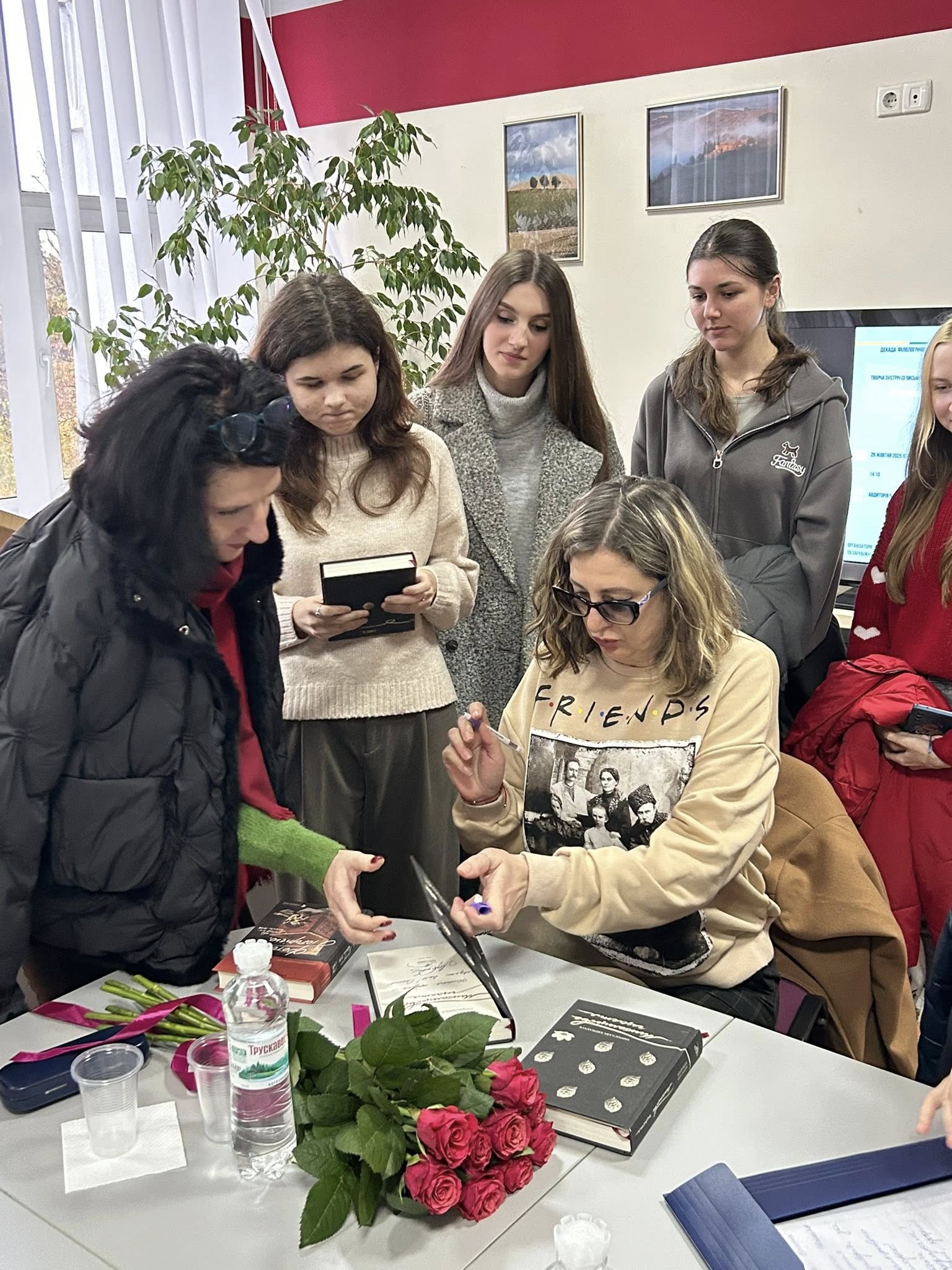 29 жовтня на філологічному факультеті з ініціативи кафедри української та зарубіжної літератури в межах декади філологічного факультету, присвяченої 85-річчю РДГУ,відбулася творча зустріч із випускницею факультету, письменницею Мирославою Кирильчук та презентація її роману «Микольцьове щастя».